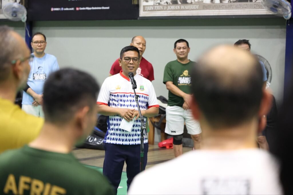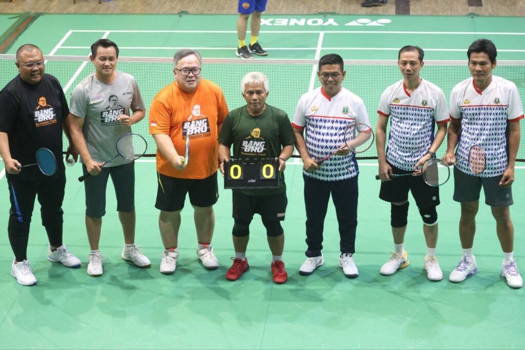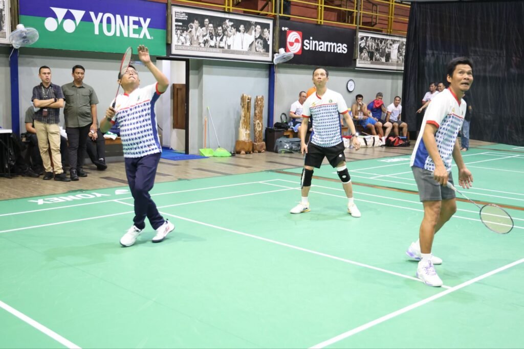 Global Rise TV (Tangerang-Banten)–Gubernur Banten Andra Soni ikut meramaikan pertandingan persahabatan badminton yang dilaksanakan oleh BangBro Badminton Triple (B3T) di Hall Daihatsu Yonex Sunrise Candra Wijaya International Badminton Center, Serpong, Kota Tangerang Selatan (Tangsel) pada Sabtu (31/1/2026). Pertandingan tersebut dimeriahkan oleh sejumlah mantan menteri hingga pengamat politik.