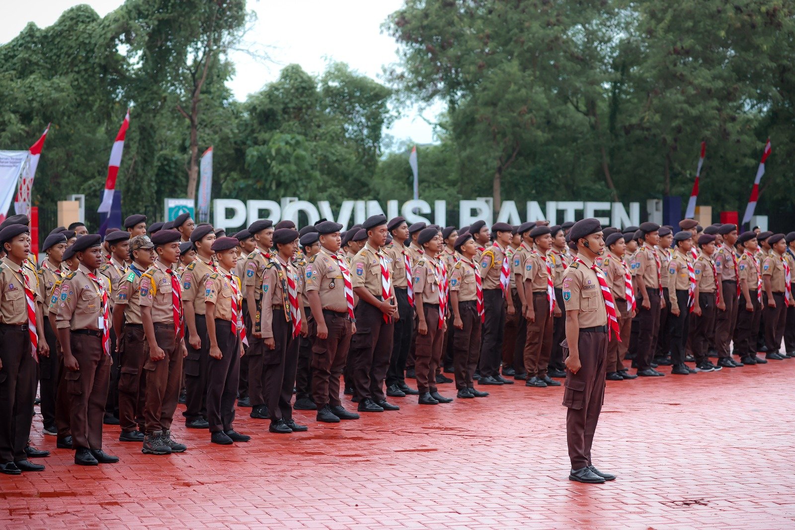 Sebelum upacara dimulai, Ketua Kwarda Gerakan Pramuka Provinsi Banten Septo Kalnadi melaporkan upacara diikuti oleh 680 anggota Pramuka se- Provinsi Banten.