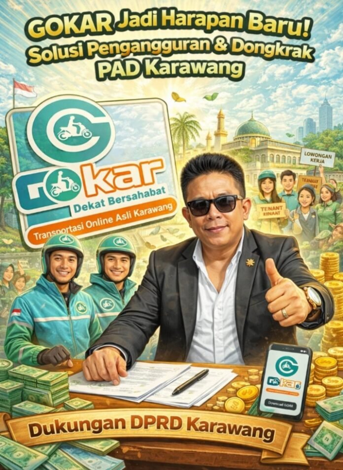 Glibal Rise TV (KARAWANG)— Di tengah dinamika ekonomi daerah yang terus bergerak, sebuah inisiatif lokal mulai mencuri perhatian. Adalah GOKAR (Go Karawang, Dekat Bersahabat), platform ojek online berbasis daerah yang digagas putra asli Karawang, kini hadir membawa harapan baru bagi masyarakat.