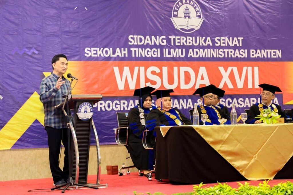 “Semoga selepas wisuda, mahasiswa bisa profesional dalam bekerja, sukses dan mendapatkan berkah,” katanya dalam sambutannya pada Wisuda XVII Program Sarjana dan Pascasarjana Sekolah Tinggi Ilmu Administrasi (STIA) Banten di Hotel Royale Krakatau Cilegon, Kamis (18/9/2025).