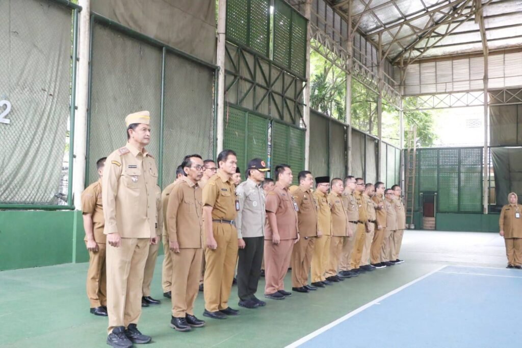 Turut hadir pada Apel Pagi yang dirangkaikan dengan Peringatan Hari Desa Nasional Tahun 2026 Tingkat Kabupaten Serang para pejabat eselon II, III, IV dan para ASN di lingkungan Pemkab Serang.