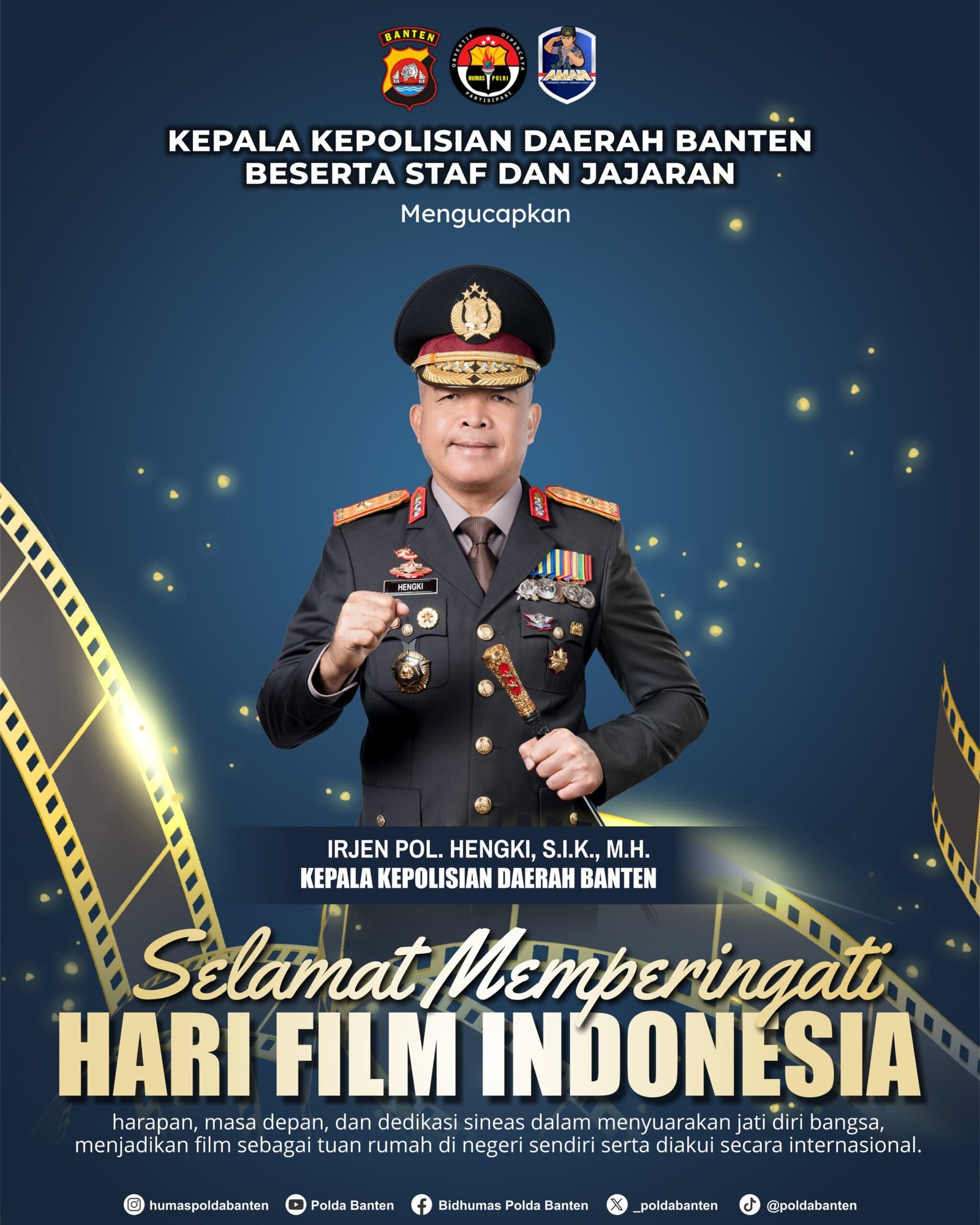 Global Rise TV (Serang) – Dalam rangka memperingati Hari Film Nasional ke-75, Polda Banten menyampaikan ucapan selamat serta apresiasi kepada seluruh insan perfilman Indonesia yang telah berkontribusi dalam memajukan industri kreatif tanah air.