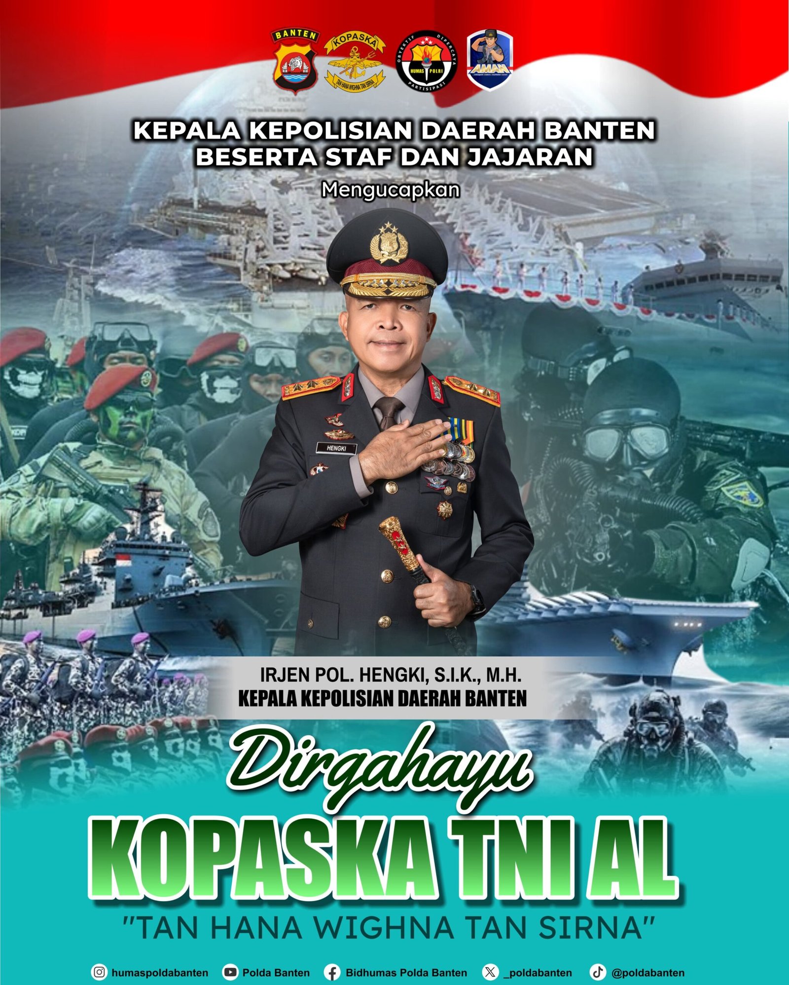 Global Rise TV (Serang)- Polda Banten menyampaikan ucapan selamat ulang tahun ke-64 kepada Komando Pasukan Katak (Kopaska) TNI Angkatan Laut yang diperingati pada 31 Maret 2026 dengan mengusung tema “Tan Hana Wighna Tan Sirna”.