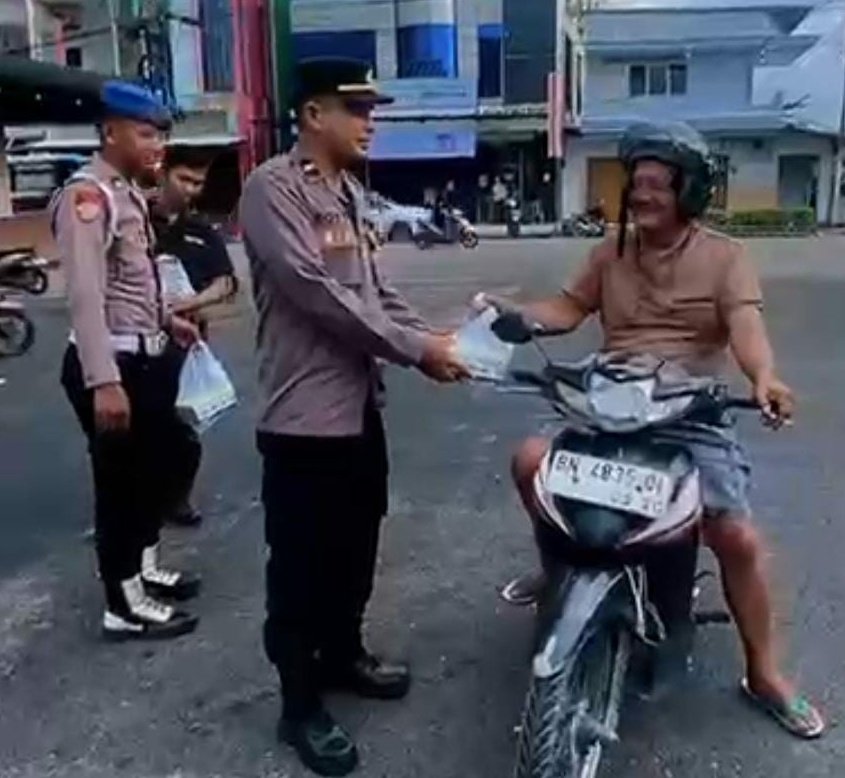 Selain melakukan pemantauan Situasi keamanan, personel juga Membagikan, takjil kepada para pengendara, dan masyarakat yang Melintas,