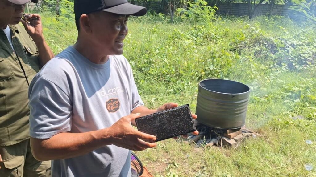 Tak berhenti di situ, tim KKN-T Inovasi IPB University juga menggandeng warga dalam menyelenggarakan demo pembuatan paving block dari limbah plastik non-organik di Kampung KB Desa Sindangsari. Sampah plastik yang sebelumnya hanya menumpuk atau dibuang sembarangan, kini diolah menjadi bahan bangunan bernilai ekonomis. Proses ini dilakukan dengan cara mencampurkan plastik bekas, pasir, dan oli, lalu dicetak menggunakan alat cetak berbentuk balok hingga membentuk paving block yang kuat dan tahan lama.