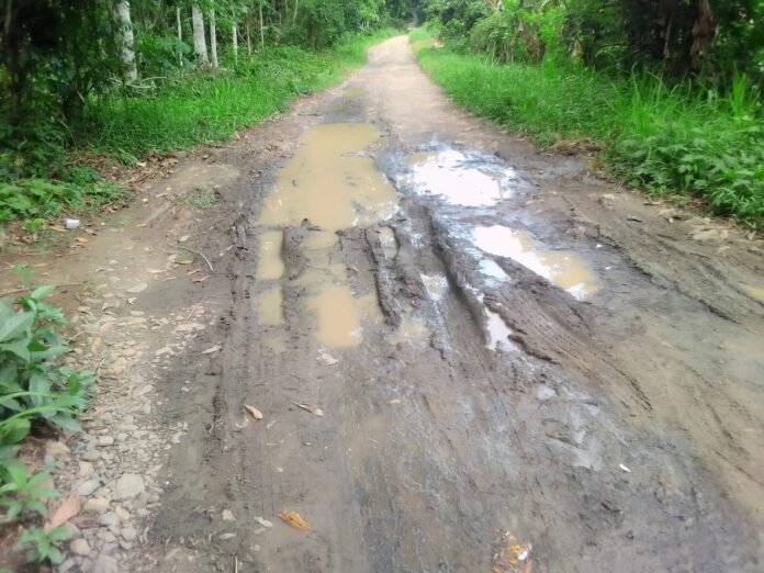 Saat hujan, jalan tersebut sulit dilewati, lubang-lubang di sepanjang jalan menyulitkan dan membahayakan pengguna jalan, terutama pada malam hari kata warga setempat.