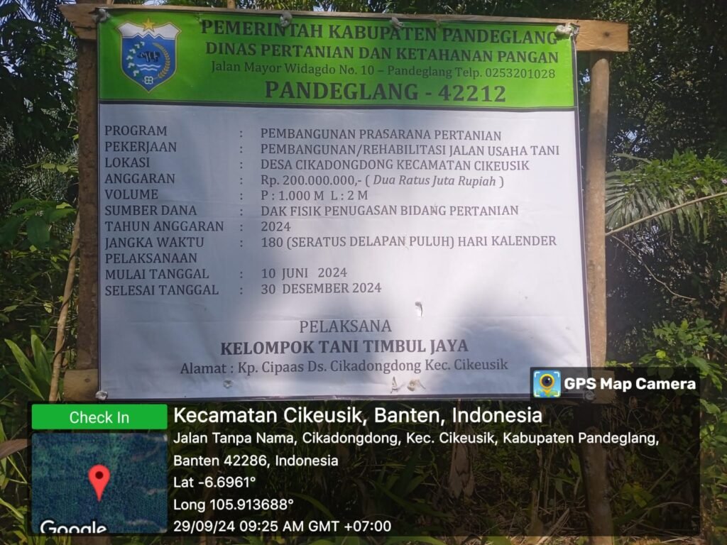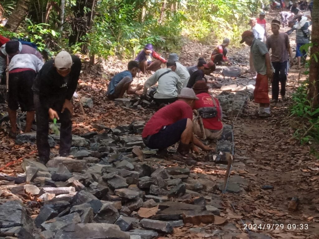 kelompok Tani timbul jaya yang sedang dalam melaksanakan kegiatan membangun jalan di kampung Gunung batu desa cikadongdong kecamatan Cikeusik kabupaten pandeglang banten. warga masyarakat sangat berantusian dan berbondong bondong dalam pelaksanan kegitan membangun jalan demi keberlangsungan perekonomian, mengingat lokasi jalan sentra produksi pertanian warga masyarakat, jadi sangat di butuhkan jalan usaha Tani (JUT) oleh warga minggu 29/09/2024