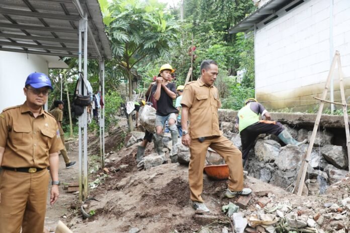 Atas bencana longsor yang mengakibatkan TPT jebol, camat Ugun mengaku langsung melakukan koordinasi dengan DPUPR agar segera dilakukan pembangunan TPT kembali.