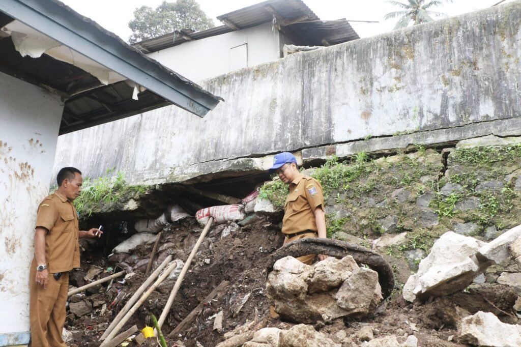 “Termasuk TPT di belakang kantor kita juga jebol yang luar biasa debit airnya sangat lumayan besar, padahal posisi kecamatan juga ada di atas. Akibatnya, air masuk semua ke ruangan camat dan arsip dengan ketinggian sekitar 50 centi meter,” kata Ugun Gurmilang pada Rabu, 28 Januari 2026.