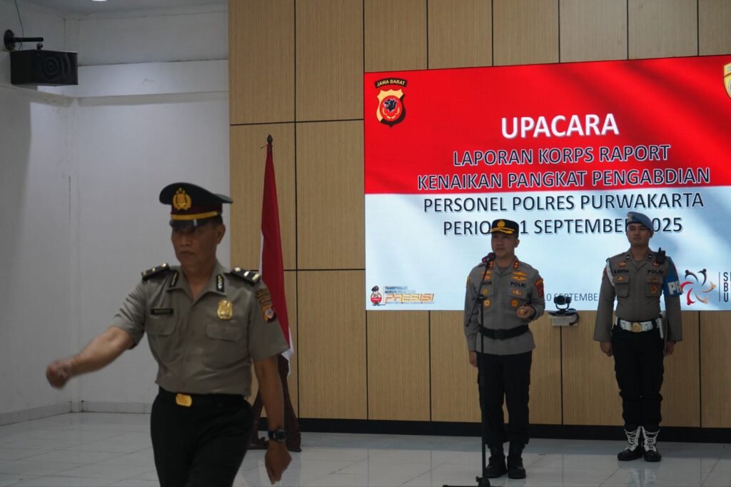 Upacara Kenaikan Pangkat Pengabdian dipimpin Kapolres Purwakarta, AKBP I Dewa Putu Gede Anom Danujaya di Aula Presisi Polres Purwakarta, pada Rabu, 10 September 2025.