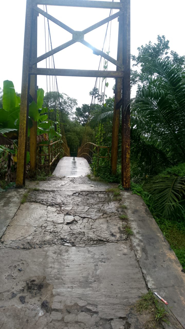Pantauan di lapangan menunjukkan beberapa bagian lantai jembatan sudah berlubang dan berkarat, sementara tali penggantung terlihat mulai kendur dan rapuh. Kondisi ini membuat warga sekitar waswas setiap kali harus melewati jembatan tersebut, baik untuk beraktivitas menuju sekolah, pasar, maupun lahan pertanian.