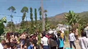 Menurutnya, saat ini warga masih berdiam di lapangan dan beberapa kendaraan pun turut disimpan di lapangan. Kata dia, beberapa warga pun masih terlihat panik.
