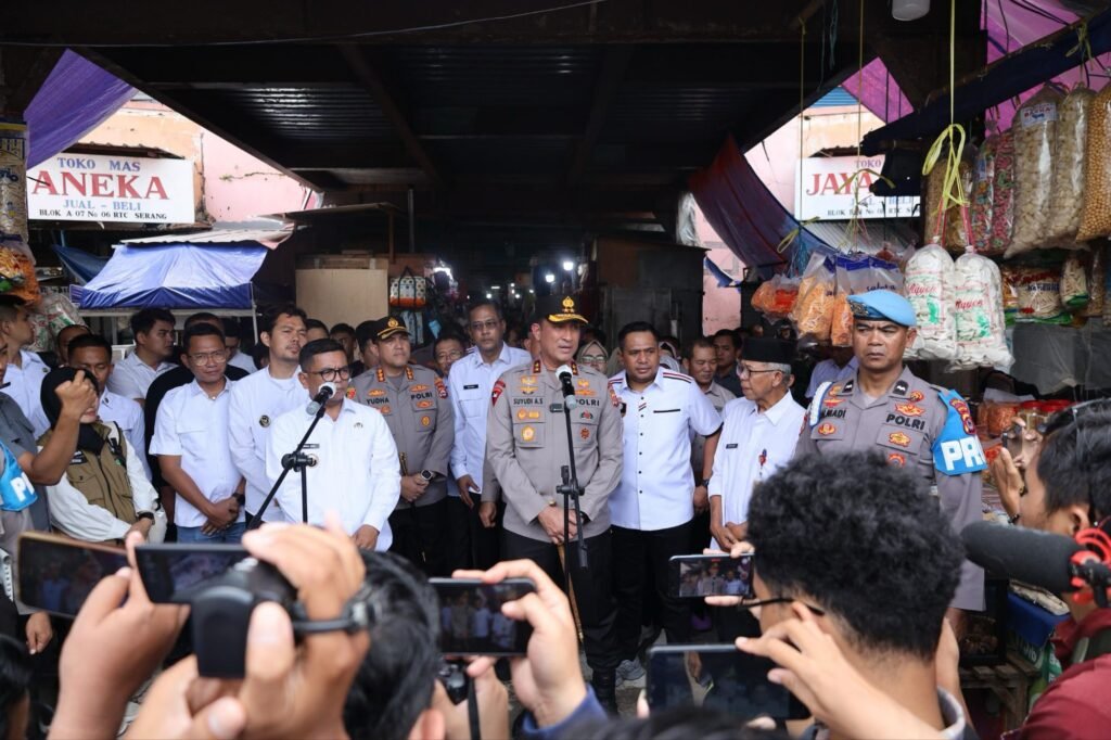 Kapolda Banten Bersama Gubernur Pantau Sembako di Pasar Rau dan Cek Stok Beras Bulog