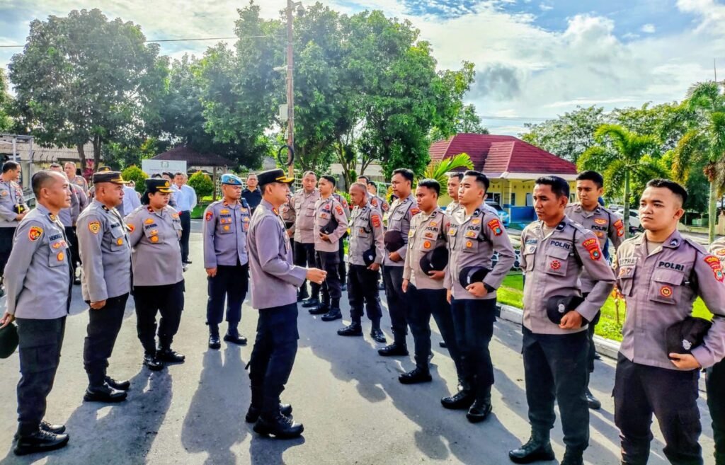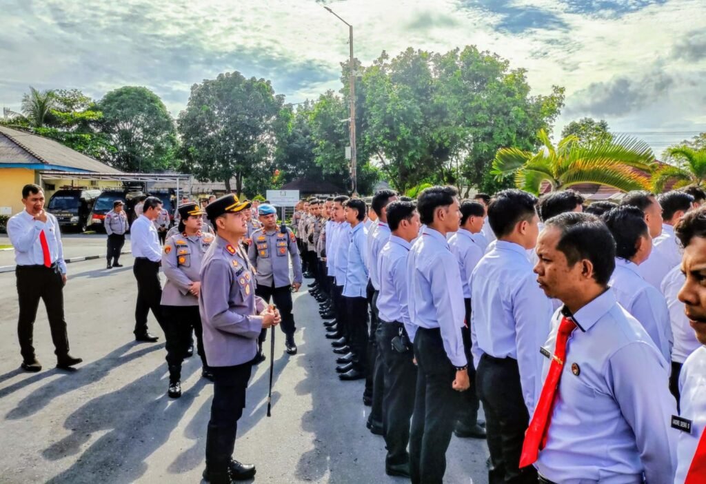 Global Rise TV (Bangka)-Kapolres Bangka AKBP Deddy Dwitiya Putra. pimpin Apel Pagi dan melakukan pemeriksaan sikap tampang personel Polres Bangka serta dilanjutkan pemeriksaa senjata api (senpi) dinas milik Polres Bangka yang dipegang oleh personil Polri. di dijajaran Polres Bangka. Bertempat di Halaman Polres Bangka Senin (14/04/2025).