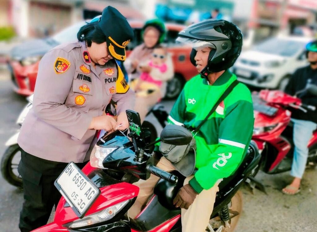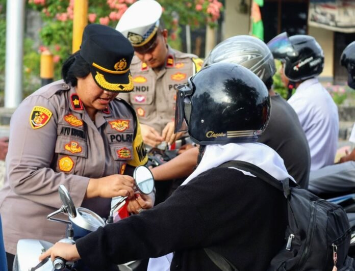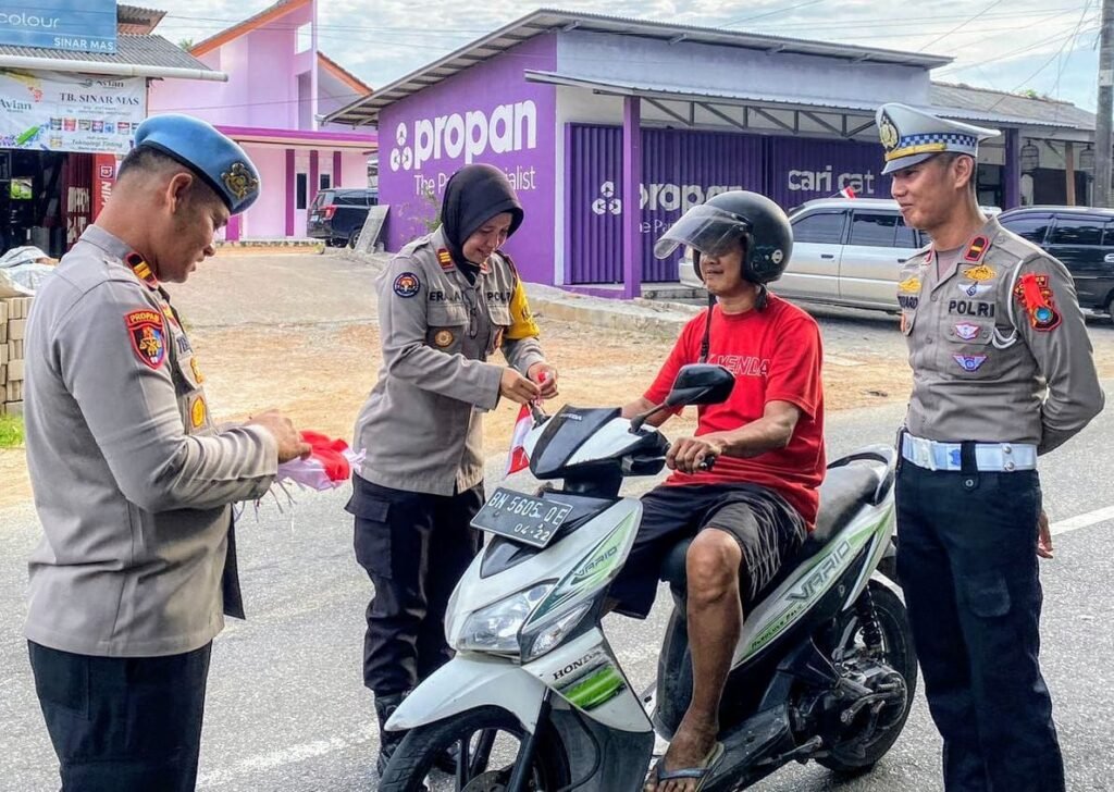 “Pembagian bendera Merah putih, kepada pengendara ini untuk Meningkatkan, semangat Menyambut HUT. ke-80 Republik Indonesia,” ujar AKBP Deddy Dwitiya Putra,
