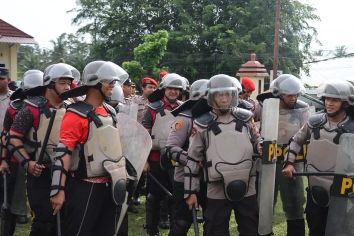Global Rise TV (Bangka Sungailiat) Polres Bangka, menggelar kegiatan latihan pengendalian Massa (Dalmas) sebagai upaya Meningkatkan, kemampuan personel dalam, Menghadapi berbagai potensi, Gangguan kamtibmas Jum.at (05/12/2025)
