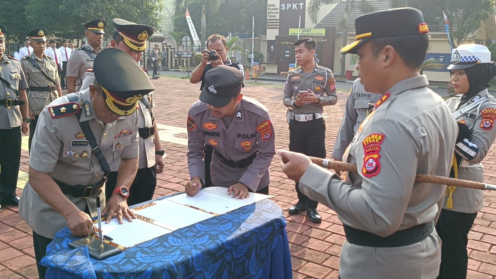 Global Rise TV (LEBAK)-Kapolres Lebak Polda Banten AKBP Suyono,S.I.K pimpin Upacara Serah Terima Kasat Lantas, Kasat Tahti dan 7 ( Tujuh ) Kapolsek Jajaran Polres Lebak di Lapangan Mapolres Lebak. Rabu (21/08/2024)