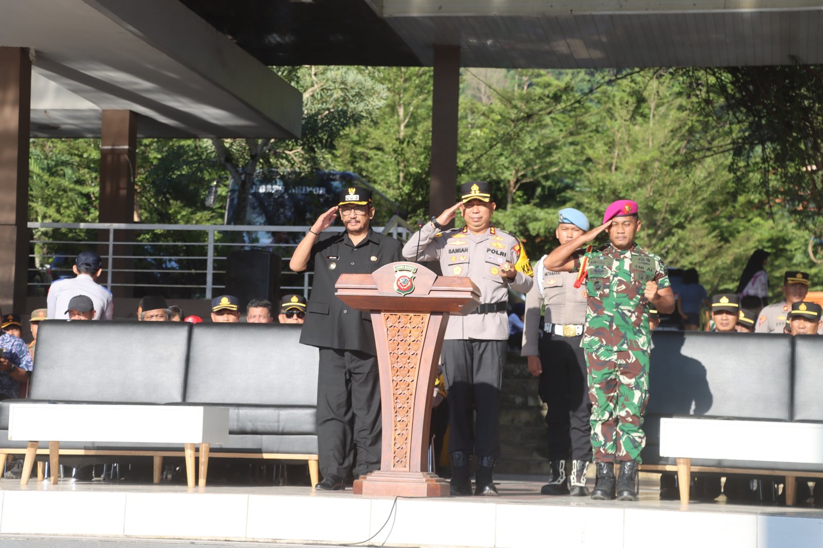 Apel tersebut dipimpin langsung oleh Kapolres Sukabumi AKBP Dr. Samian, S.H., S.I.K., M.Si. dan dihadiri Bupati Sukabumi Drs. H. Asep Japar, M.M., unsur Forkopimda, TNI, instansi pemerintah daerah, serta berbagai stakeholder yang terlibat dalam pengamanan arus mudik dan perayaan Idul Fitri.