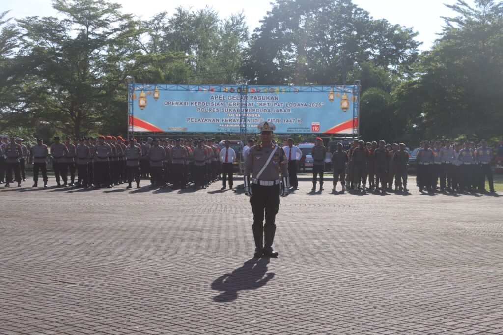 Global Rise TV (Sukabumi) – Dalam rangka memastikan kesiapan pengamanan menjelang Hari Raya Idul Fitri 1447 H, Polres Sukabumi melaksanakan Apel Gelar Pasukan Operasi Ketupat Lodaya Tahun 2026 di Lapang Cangehgar, Kompleks Olahraga Palabuhanratu, Kabupaten Sukabumi, Kamis (12/3/2026) sore.
