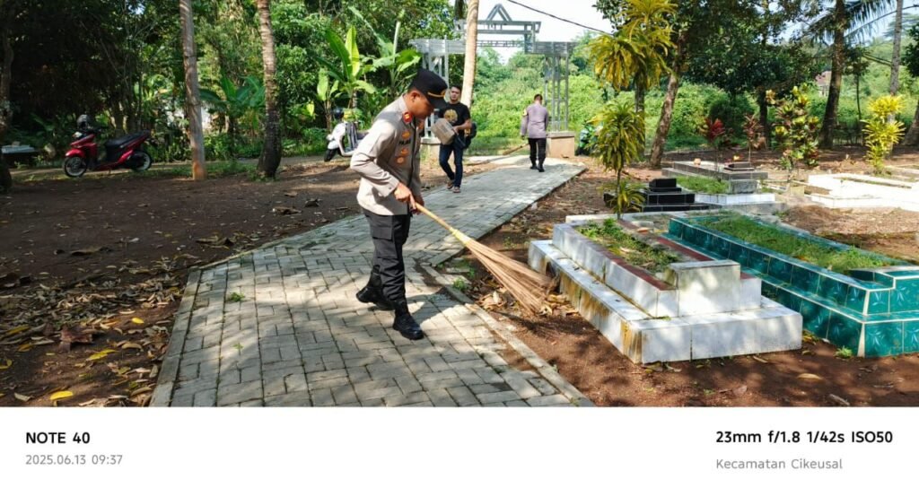 Dia Menambahkan “Dalam kegiatan Ini kami dari Jajaran Kapolsek Cikeusal melakukan bersih- bersih TPU Sukaratu Desa Sukaratu Kec. Cikeusal dari rumput liar, sampah dan dedaunan yang menumpuk di areal TPU serta memberikan peralatan kebersihan kepada Pengurus TPU