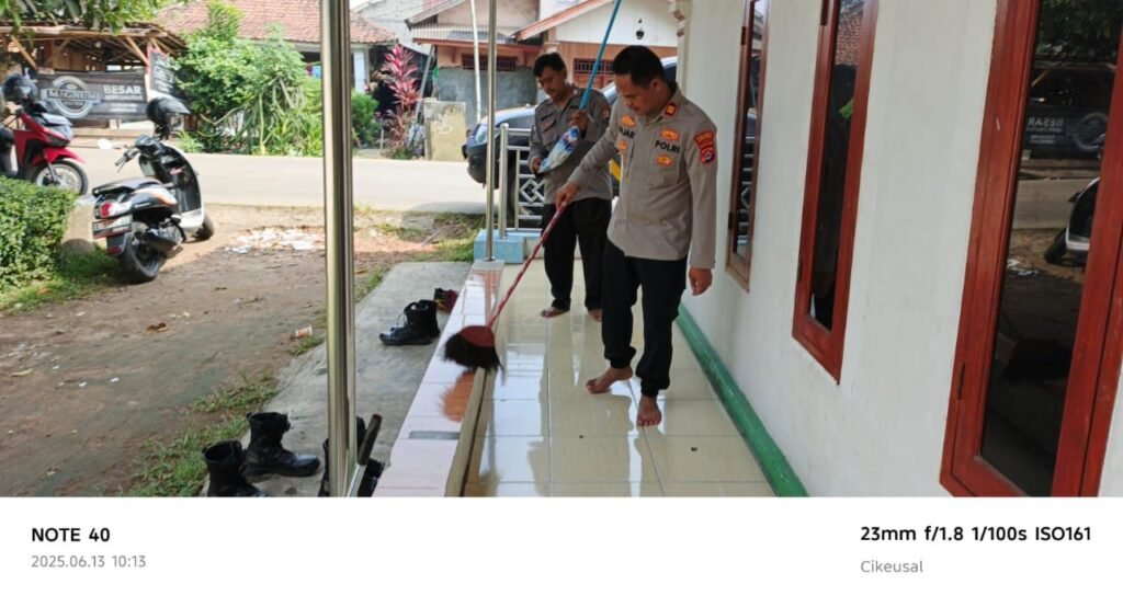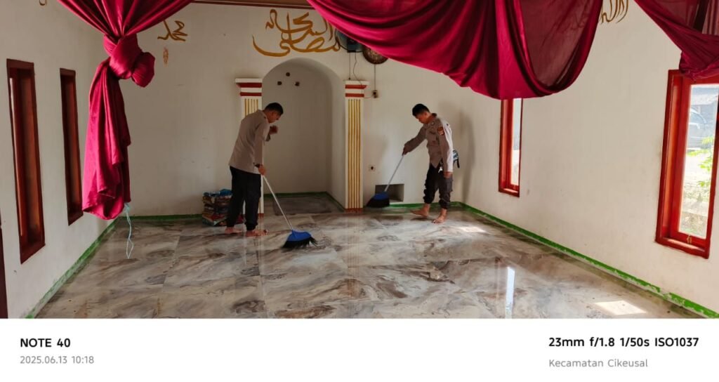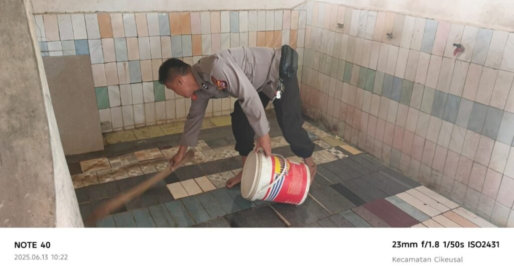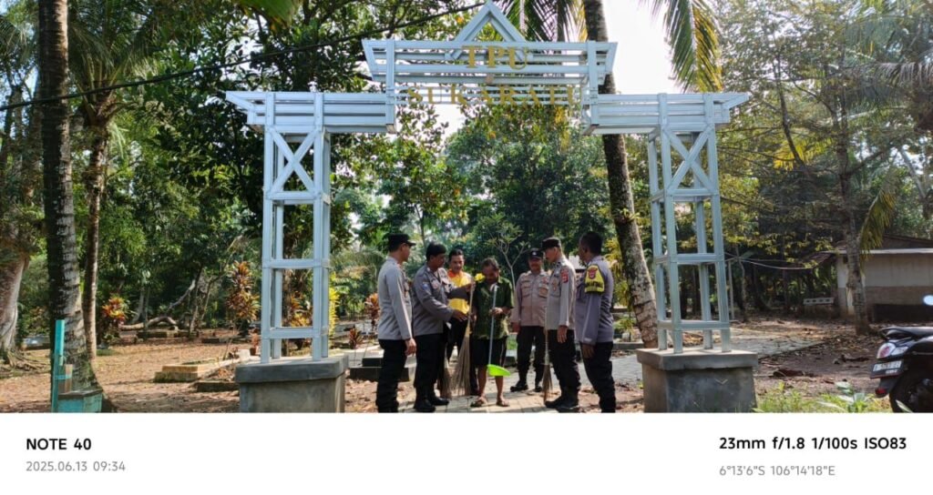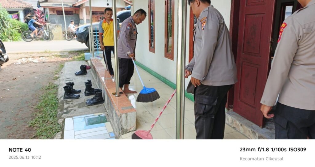 Global Rise TV (Serang) – Kapolsek Cikeusal bersama Jajaran Melaksanakan Kegiatan Bakti Sosial Religi Bersih – Bersih Mushola Dan Tempat Pemakaman Umum Di Darkum Polsek Cikeusal Dalam Rangka Menyambut Hari Bhayangkara . 13 Juni 2025 .