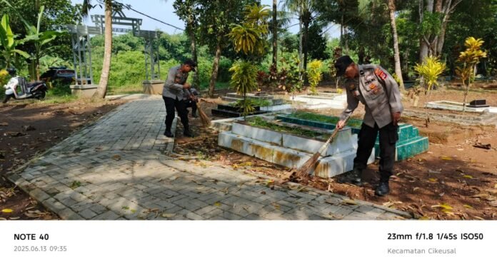 Global Rise TV (Serang) – Kapolsek Cikeusal bersama Jajaran Melaksanakan Kegiatan Bakti Sosial Religi Bersih – Bersih Mushola Dan Tempat Pemakaman Umum Di Darkum Polsek Cikeusal Dalam Rangka Menyambut Hari Bhayangkara . 13 Juni 2025 .