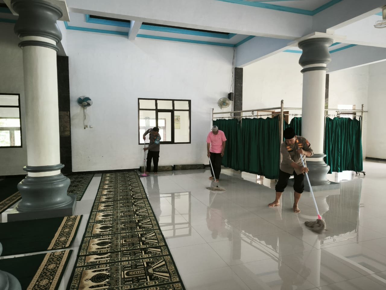 Kapolsek Cimanggu dan Jajaran Bersama Ketua DKM Gelar Aksi Bersih-Bersih Mesjid Sambut Ramadhan