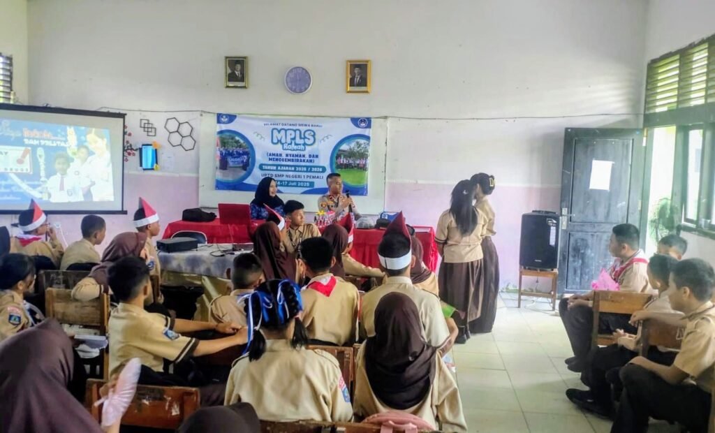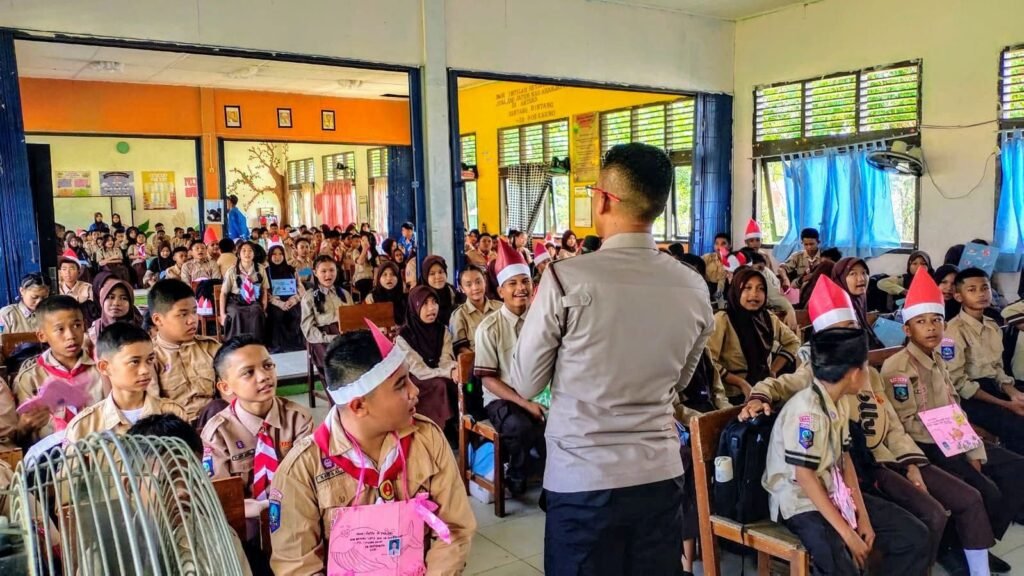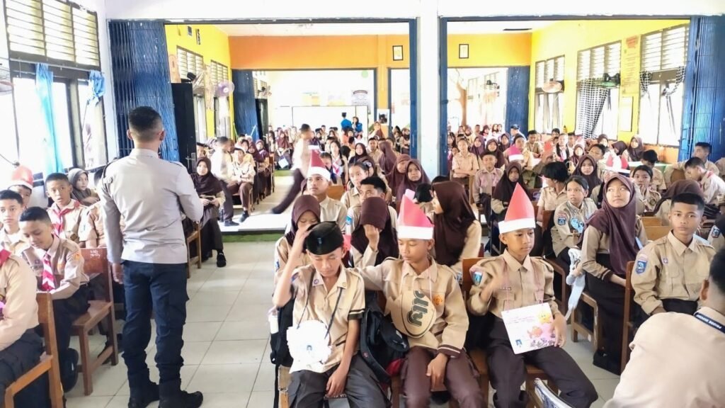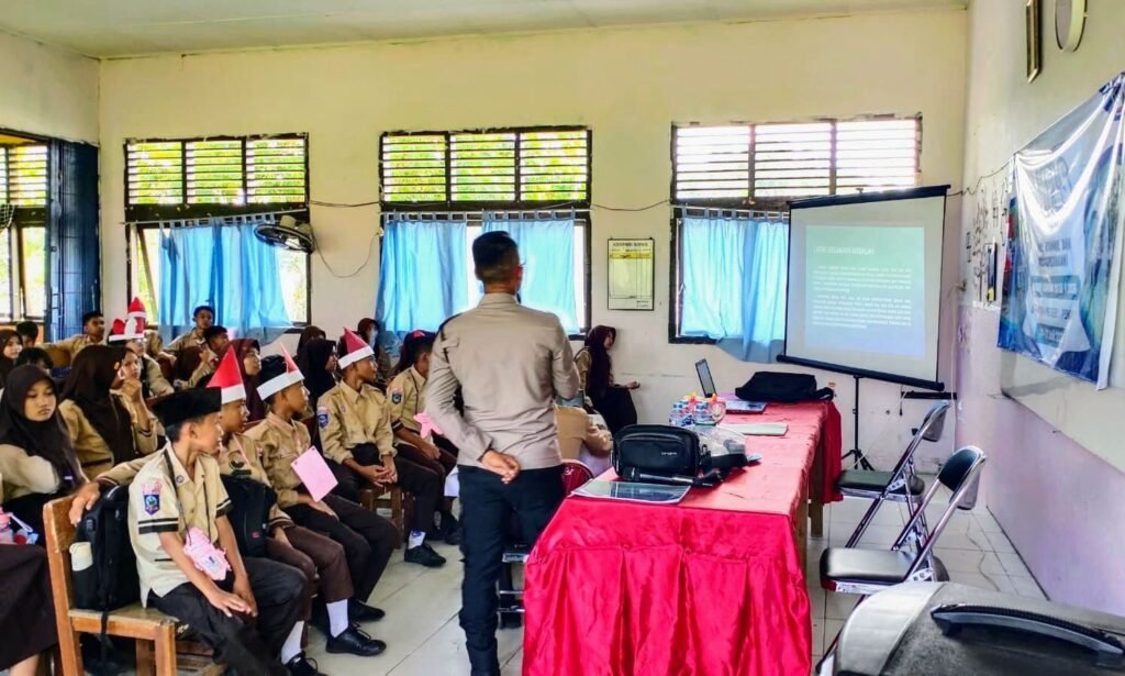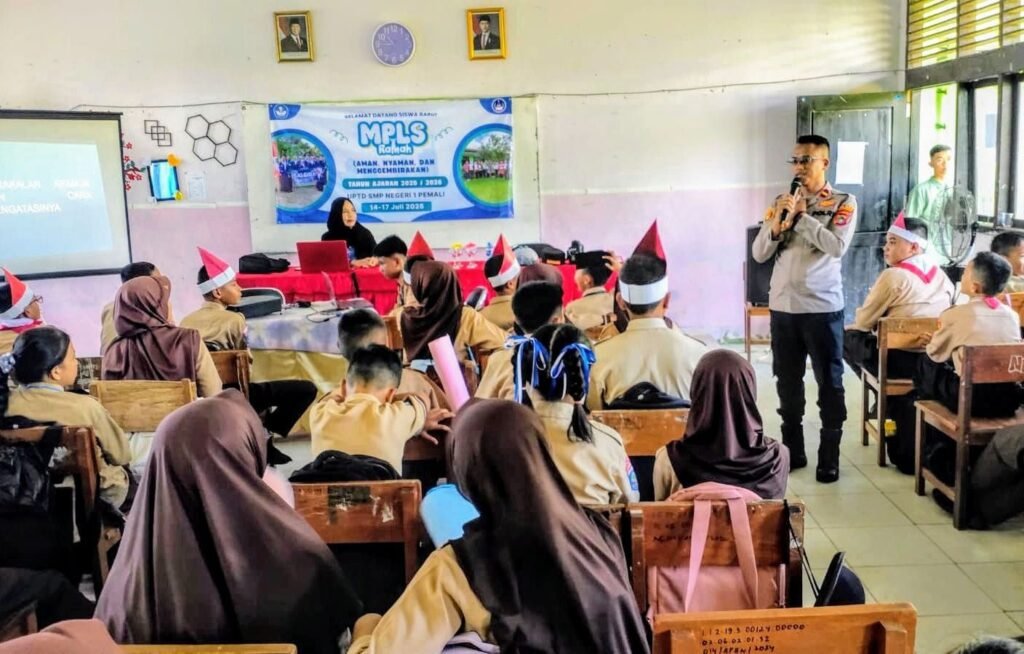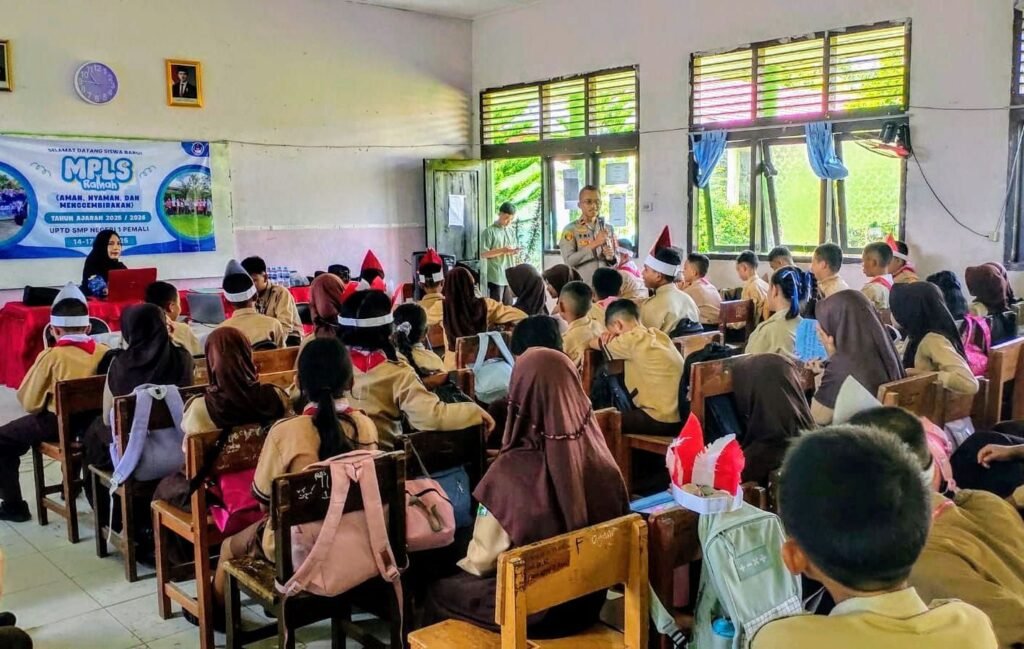 Global Rise TV (Bangka Sungailiat)-Kapolsek Pemali, Ipda Tri Nurhadi, S.H., turun langsung ke SMPN-1 pemali untuk memberikan, penyuluhan kepada para siswa baru dalam kegiatan, masa pengenalan lingkungan sekolah (MPLS) Kamis (17/07/2025).