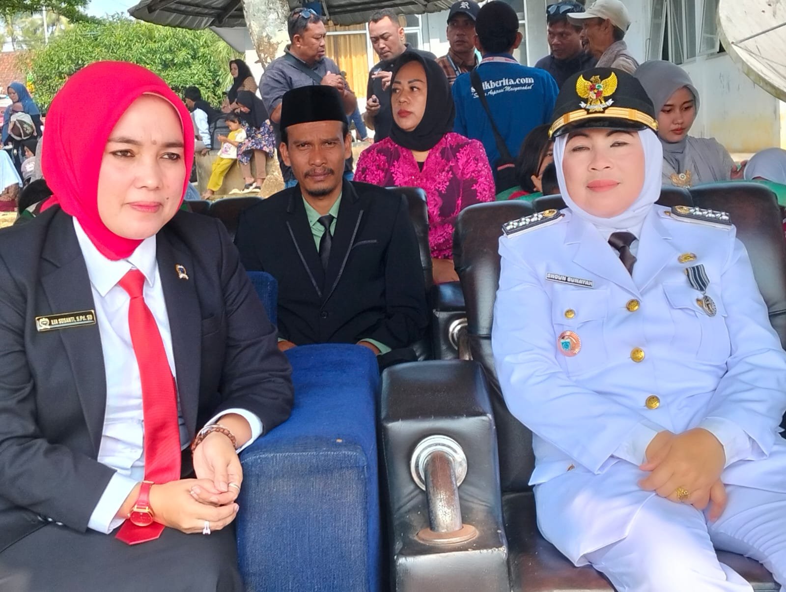 Prosesi pengibaran bendera Merah Putih berlangsung khidmat di bawah kibaran angin pagi, diiringi lagu kebangsaan Indonesia Raya yang dinyanyikan penuh semangat oleh seluruh peserta. Upacara juga semakin meriah dengan penampilan seni budaya khas Banten, menghadirkan alunan musik tradisional yang menambah kekhidmatan dan keceriaan suasana.