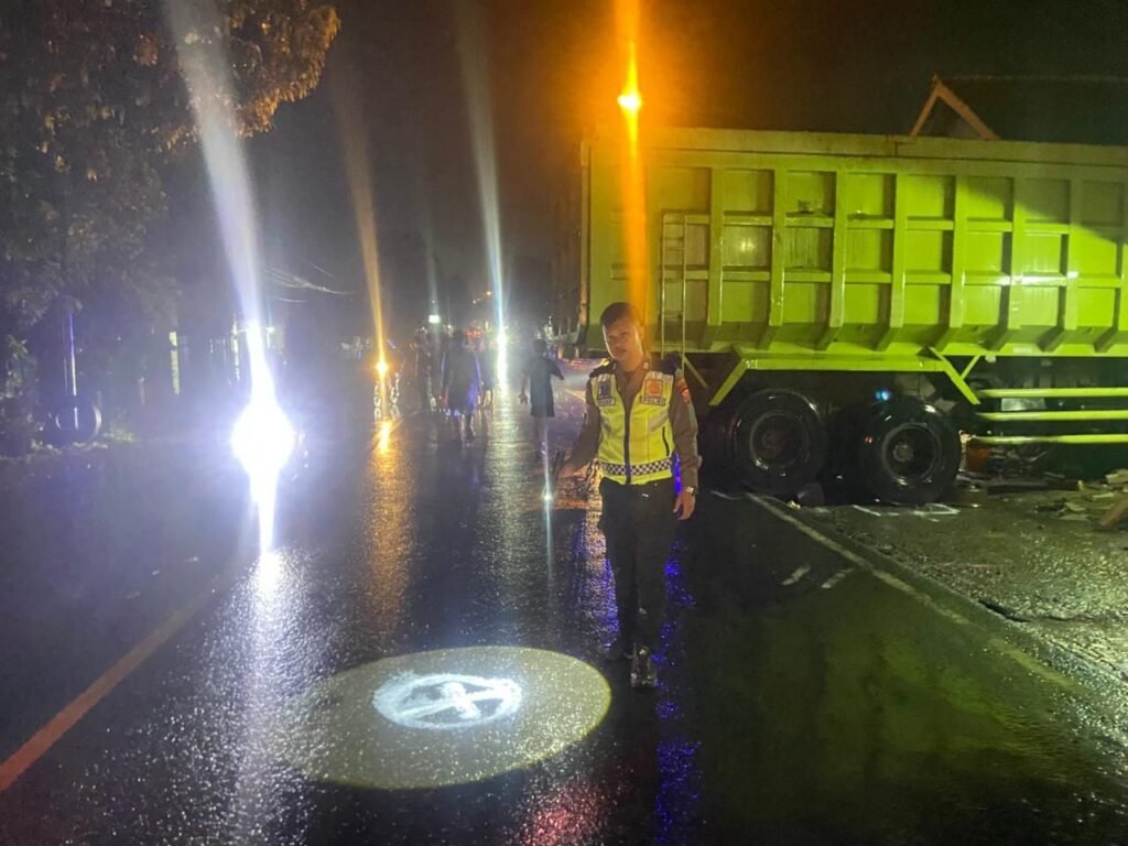 Insiden tersebut melibatkan satu unit kendaraan Hino Dump Truck dan sepeda motor Honda Revo, yang mengakibatkan dua orang meninggal dunia.