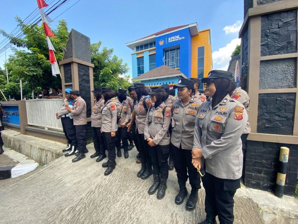 Disela-sela aksi damai yang digelar di depan kantor Pemerintah Kabupaten (Pemkab) Purwakarta itu terlihat sejumlah polisi wanita (polwan) Negosiator Regu II yang berjaga dengan dengan humanis.