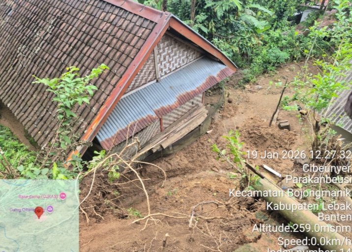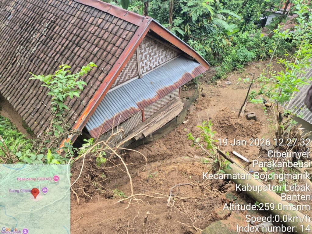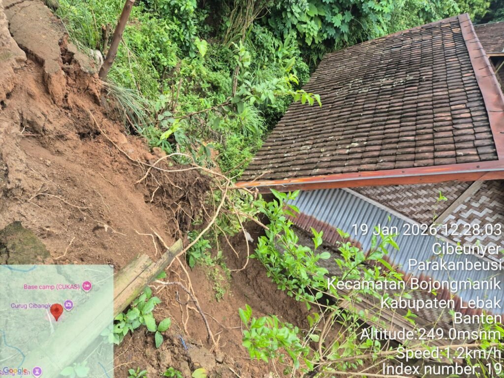 (Lebak)- personil Polsek Bojongmanik Polres Lebak melaksanakan pengecekan rumah warga yang terjadi bencana tanah longsor yang berada di Kp Kalidatar Ds Parakanbeusi Rt 07 Rw 02 Kec Bojongmanik Kab Lebak – Banten Senin 19 Januari 2026.