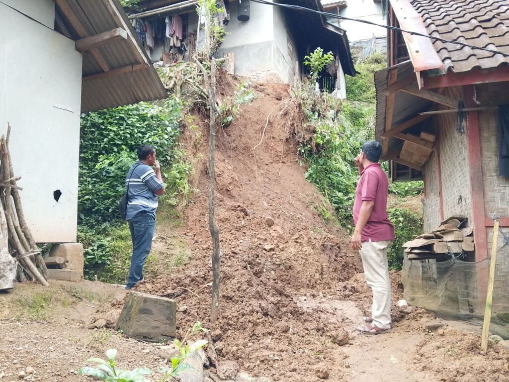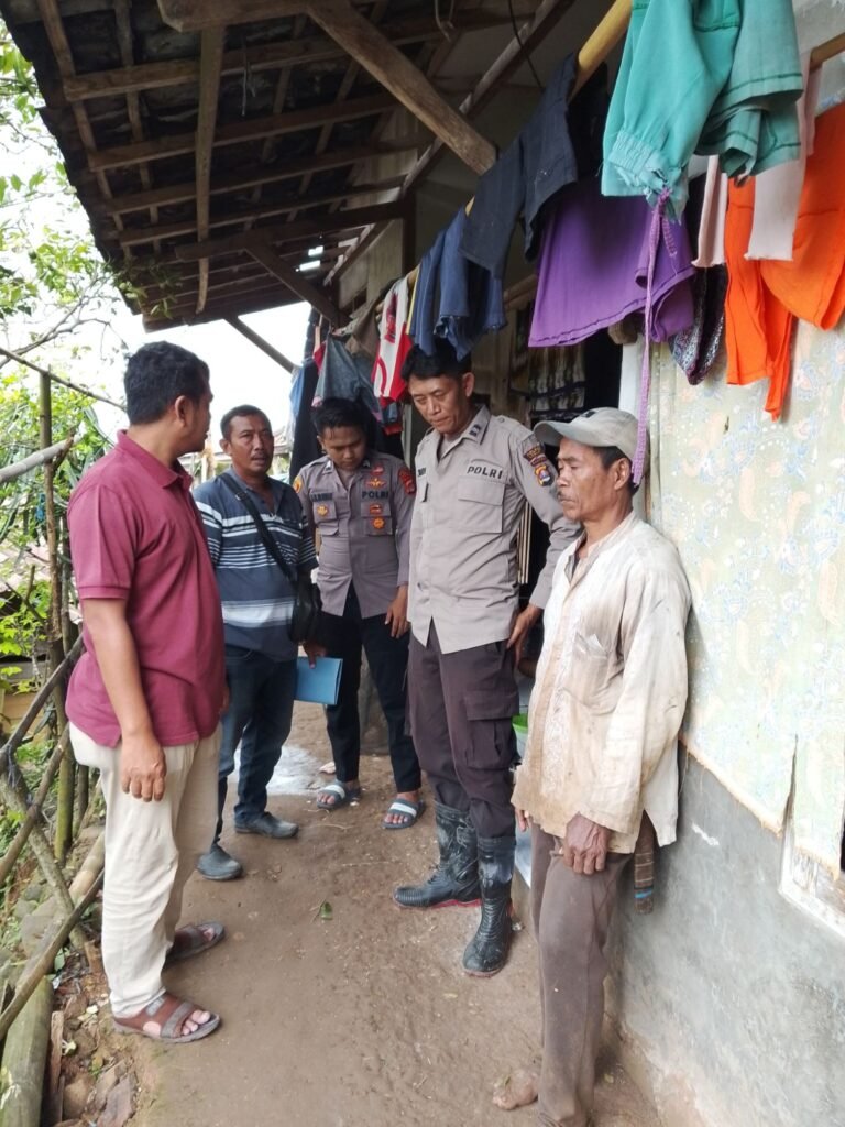 Kegiatan personil Polsek Bojongmanik Polres Lebak melaksanakan pengecekan rumah warga yang terjadi bencana tanah longsor yang berada di Kp Kalidatar Ds Parakanbeusi Rt 07 Rw 02 Kec Bojongmanik Kab Lebak – Banten