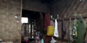 Ening Maerani, ibu dari dua anak ini hasil pernikahannya dengan ojen, kategori keluarga penuh duka yang tinggal, menempati rumah tidak layak huni, atap rumah dan dinding bolong, sepertinya simbol kemiskinan didesanya.