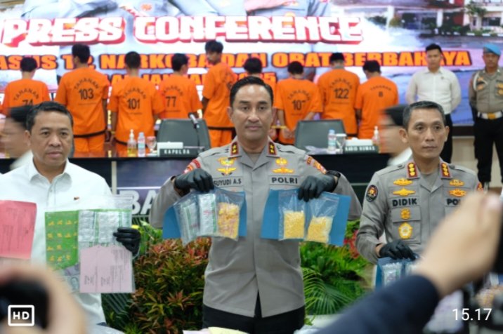 Global Rise TV (Serang)-Kapolda Banten Irjen Pol Suyudi Ario Seto telah mengungkap 71 kasus tindak pidana narkoba dan obat terlaranng selama Januari 2025. Hal tersebut ditegaskan oleh Kapolda Banten Irjen Pol Suyudi Ario Seto saat melakukan konferensi pers, Senin (10/2/2025) di Gedung Mapolda Banten Kota Serang.