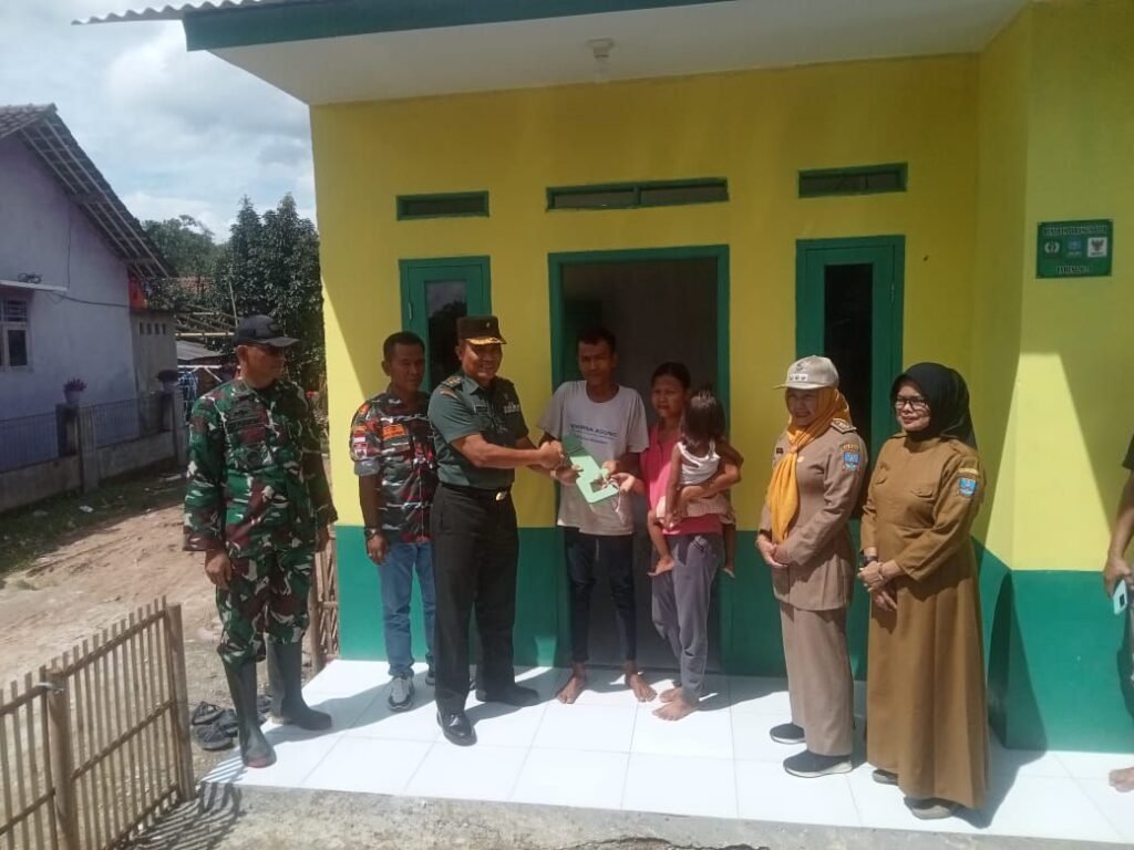 Penyerahan Kunci Rumah Layak Huni dilakukan langsung oleh Pasiter (Perwira Seksi Teritorial) Mayor Dandi Irwansyah, Kodim 0602 Serang.