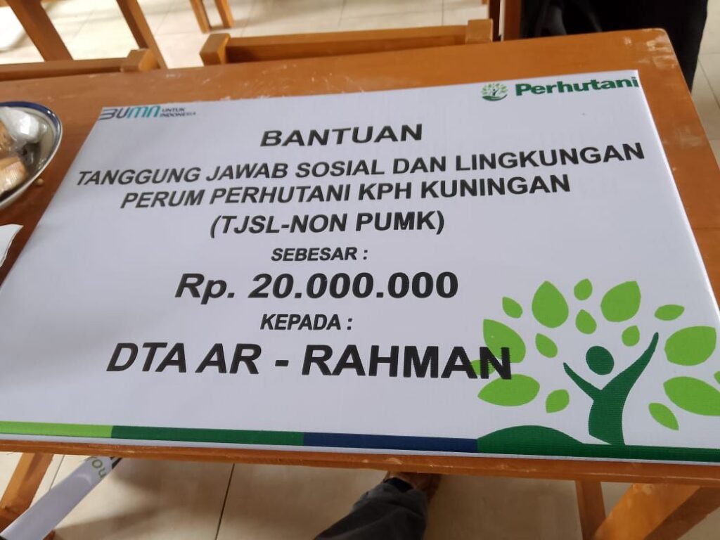 Global Rise TV (Kuningan)-Kepedulian Perum Perhutani KPH Kuningan terhadap dunia pendidikan perlu mendapat Apresiasi , pada hari ini Jum’at 27 Desember 2024 Perum perhutani KPH Kuningan dengan program Tanggung Jawab Sosial dan Lingkungan ( TJSL-NON PUMK) memberikan bantuan pada dua sekolah DTA AR- RAHMAN Kelurahan Sukamulya Kecamatan Cigugur Kuningan dan Ponpes Al-Anwar Desa Linggajaya Kecamatan Ciwaru ,masing masing sekolah Rp.20.000.000.