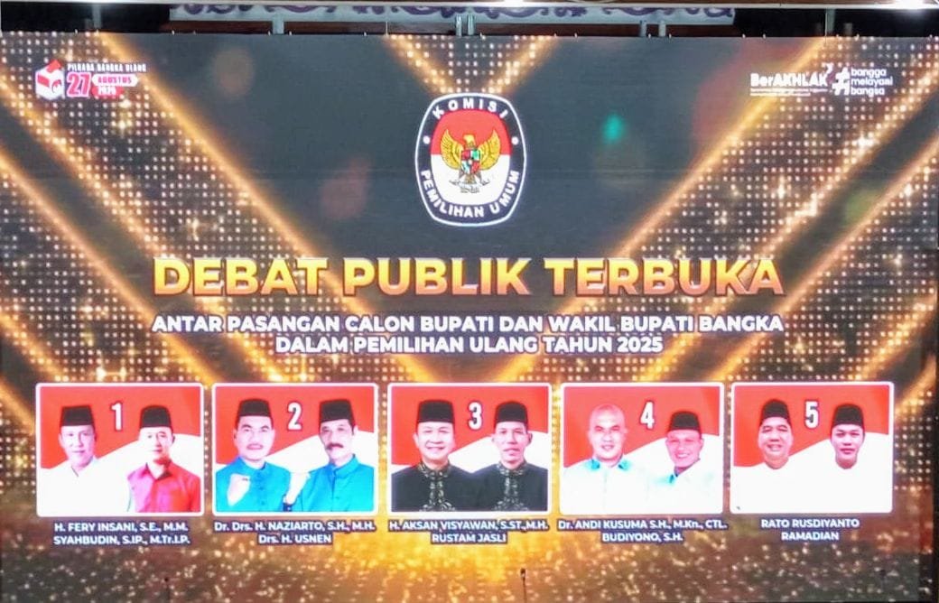 Global Rise TV (Bangka Sungailiat)-Debat Publik Terbuka Antar Pasangan Calon Bupati dan Wakil Bupati Bangka dalam Pemilihan pilkada ulang 2025 Sambutan Ketua KPU Bangka Sinarto, dan anggota (KPU) provinsi Kepulauan Bangka Belitung, beserta sekretaris Bawaslu, provinsi Kepulauan Bangka Belitung, Pj. Bupati Bangka Ketua dan anggota DPRD Kabupaten Bangka, Bertempat di hotel tanjung pesona Rabu Malam (20/08/2025),