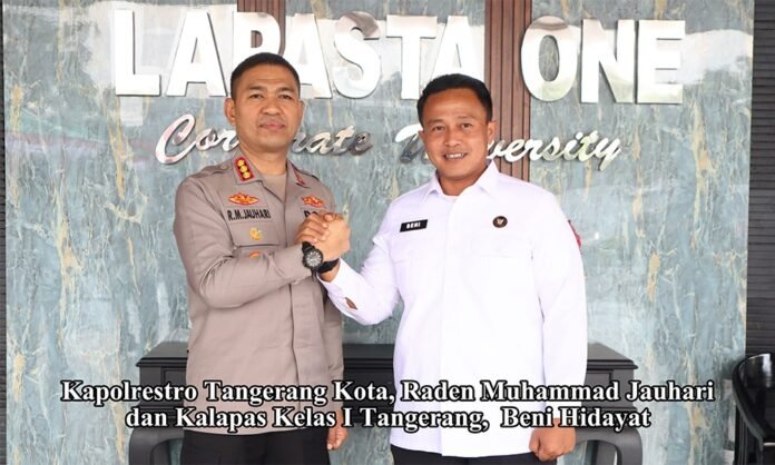 Global Rise TV (Tangerang-Banten) -Lapas Kelas I Tangerang menerima kunjungan kerja Kapolres Metro Tangerang Kota, Kombes Pol Dr. Raden Muhammad Jauhari, S.H., S.I.K., M.Si., beserta jajaran, Senin, 11-08-2025. Kehadiran Kapolres disambut langsung oleh Kepala Lapas Kelas I Tangerang didampingi seluruh Kepala Unit Pelaksana Teknis (KaUPT) Pemasyarakatan se-Kota Tangerang. Terlihat hadir dari pihak Lapas, yakni Kalapas Perempuan Kelas IIA Tangerang, Kalapas Kelas IIA Tangerang, Kalapas Pemuda Kelas IIA Tangerang, Kabapas Kelas I Tangerang, dan Kabapas Kelas II Ciangir.