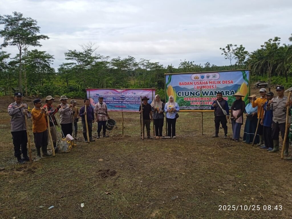 ‎gebyar penanaman jagung perogram ketahanan pangan anggaran tahun 2025, yang saat sekarang di laksanakan, di lokasi Sukatani penanaman jagung serentak  kuartal IV presiden Republik Indonesia jendral TNI (purn) H Prabowo Subianto Bumdes ciung Wanara, melalui unit usaha penanaman jagung, penggemukan kambing,dan Budi daya ikan lele,, perlu diketahui, acara penanaman jagung tersebut turut hadir berbagai tokoh penting  dan unsur pemerintah antara lain,