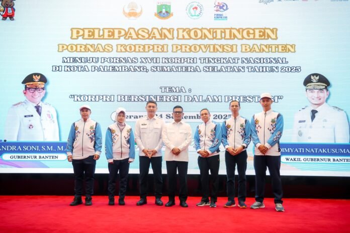 Global Rise TV ( Banten)–Gubernur Banten Andra Soni melepas puluhan kontingen yang akan mengikuti Pekan Olahraga Nasional (Pornas) Korpri ke-XVII tahun 2025 yang diselenggarakan di Kota Palembang, Sumatera Selatan dari tanggal 5-11 Oktober 2025.