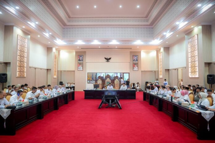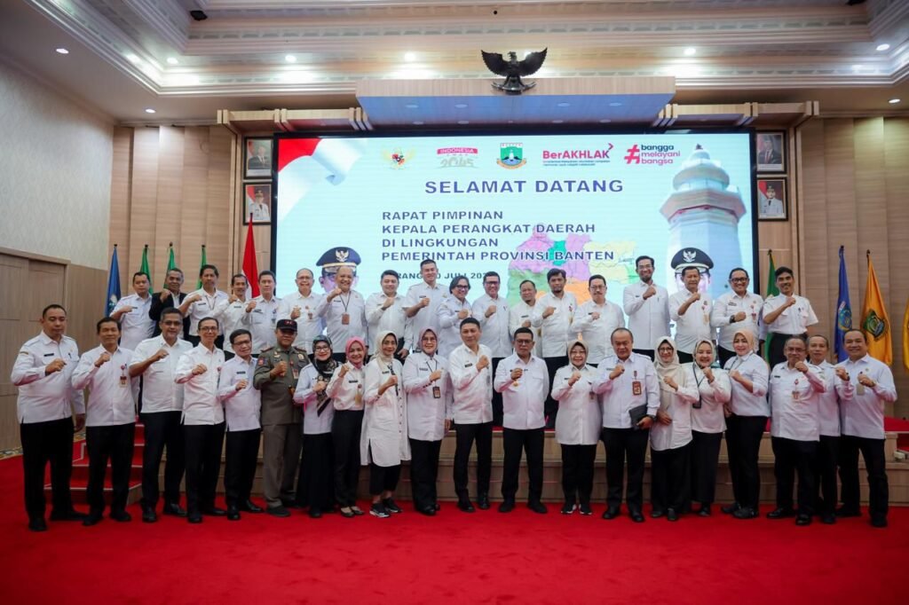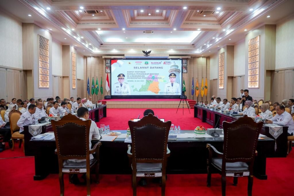 Global Rise TV(Banten)—Gubernur Banten Andra Soni menggelar rapat antar pimpinan/kepala perangkat daerah (Rapim) di Aula Pendopo Gubernur Banten Kawasan Pusat Pemerintahan Provinsi Banten (KP3B) Palima, Curug Kota Serang, Rabu (30/7/2025). Rapat dilaksanakan untuk sinergi dan kolaborasi antar Organisasi Perangkat Daerah (OPD) dalam pelaksanaan program pembangunan Provinsi Banten. Seluruh jajaran Pemerintah Provinsi Banten harus memperkuat komunikasi dan kerja kolektif, memastikan setiap tugas yang diemban berkinerja maksimal.