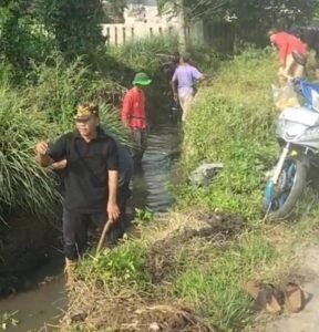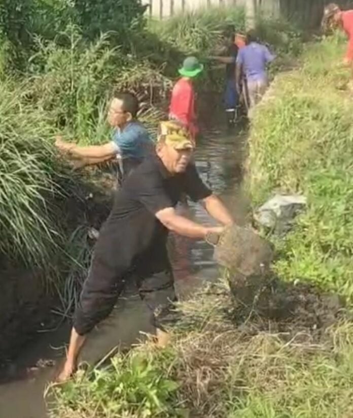 Pembersihan selokan yang dipusatkan di lingkungan jalur utama tersebut dipimpin langsung oleh Umar mantan Kades Cikampek utara