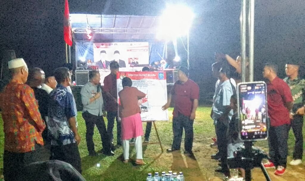 “Hadir di lapangan sepakbola Desa Labu dalam rangka acara kampanye ucap” Mulkan, angenda kampanye dialogis kami selaku calon Bupati dan wakil Bupati Bangka periode 2024-2029 yang diusung (10), partai politik, (9) partai yang memiliki kursi DPRD dan partai non parlemen yang tidak memiliki kursi di DPRD, Gang Saudara lapangan bola labu kecamatan puding Besar kabupaten Bangka,