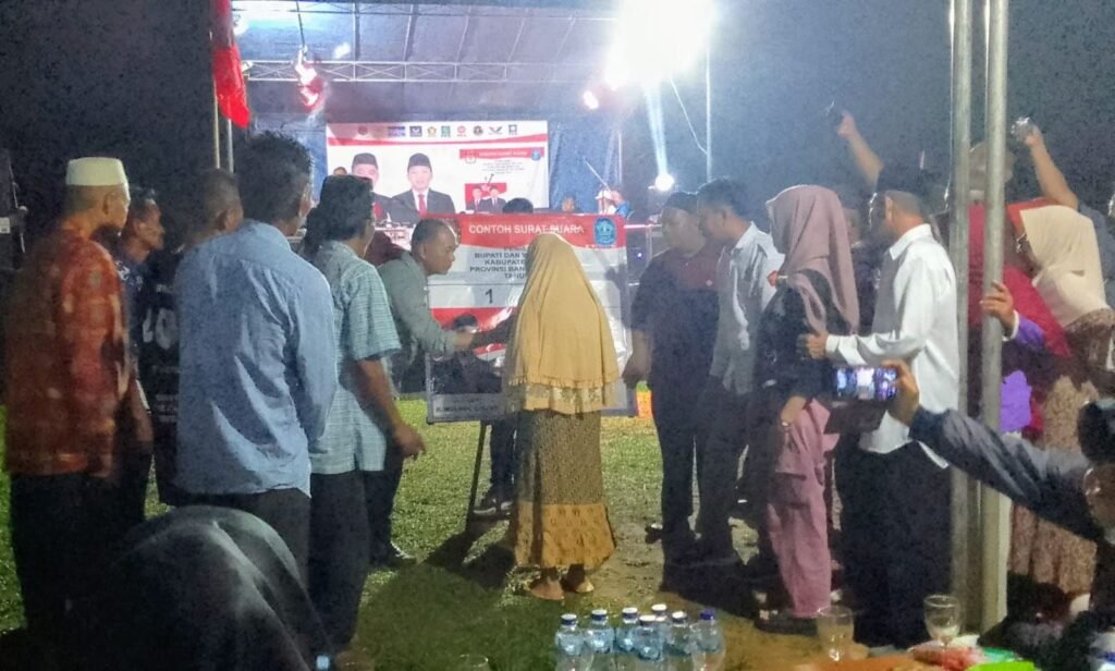 Datang ke TPS, beramai-ramai pilih calon tunggal Pak Mulkan, dan Pak Ramadian, jangan pernah berpikir kami calon tunggal langsung menang, tanpa dipilih ibu bapak tidak bisa. jadi jangan lupa datang ke (TPS) pilih pak Mulkan, dan pak Ramadian, dengan nomor urut satu”, Kata”, Mulkan, Pungkasnya (Imron).