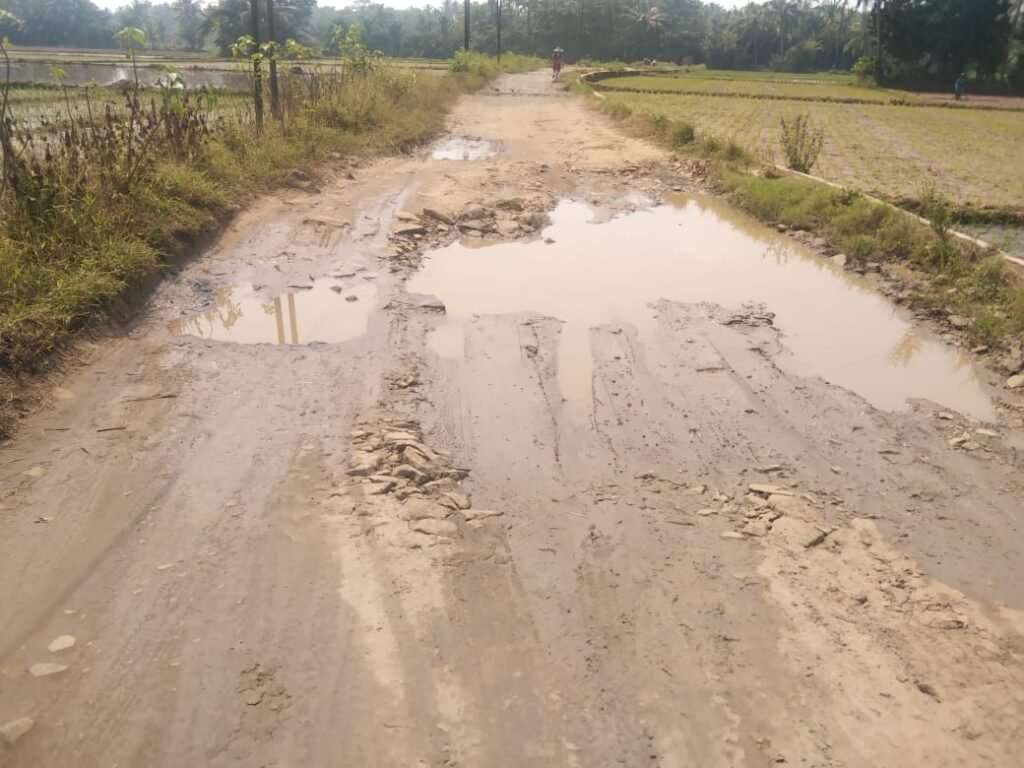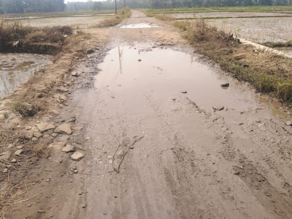 “Kami sudah terbiasa melintasi jalan ini saat musim panen padi, tapi kondisi jalan yang rusak membuat kami sangat kesulitan,” kata salah seorang warga.