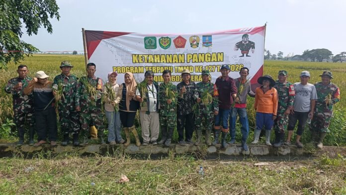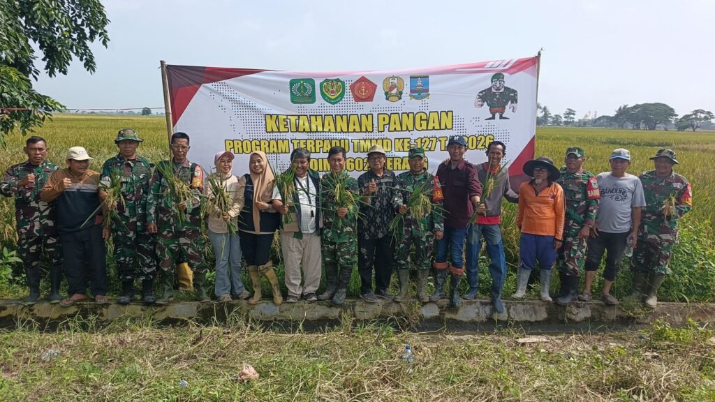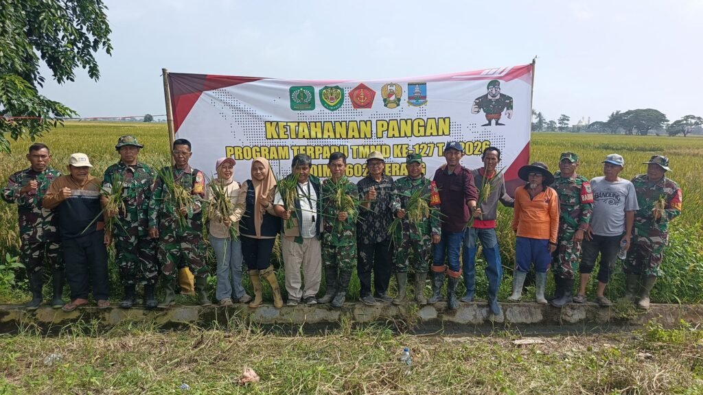 Global Rise TV (Serang), – Komandan Satuan Penugasan  (Dansatgas) TMMD Ke-127 Kodim 0602/Serang Kolonel Arm Oke Kistiyanto, menjelaskan bahwa anggota Satgas melaksanakan kegiatan Panen Raya Padi bersama Gapoktan, bertempat Kampung Cadas Ngampar, Desa Sukamenak, Kecamatan Cikeusal, Sabtu (14/02/2026).