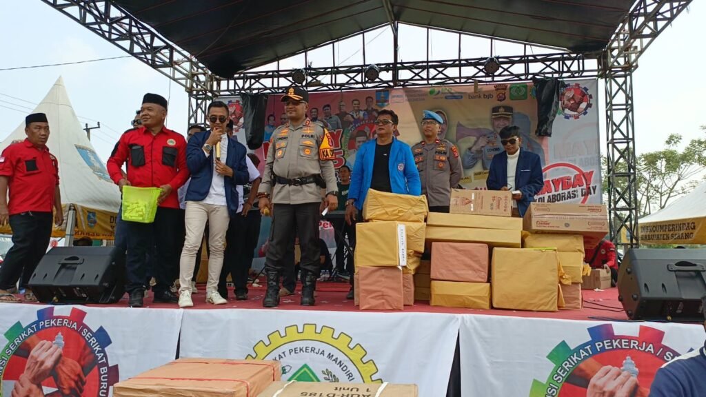 Global Rise TV (SERANG) – Kegiatan peringatan Hari Buruh Internasional atau May Day yang digelar oleh Aliansi Serikat Pekerja Serikat Buruh (ASPSB) Kabupaten Serang yang digelar di lapangan Bahbul, Kecamatan Cikande, Kamis (1/5/2025), berjalan meriah, lancar dan aman.