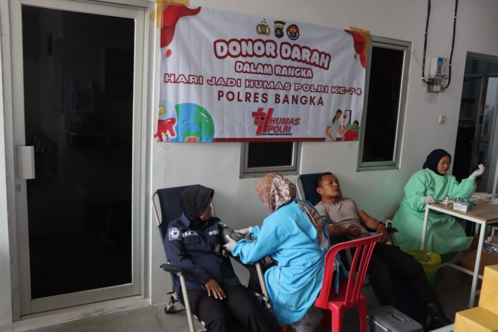 Global Rise TV (Bangka) -Dalam rangka memperingati Hari Jadi Humas Polri ke-74, Humas Polres Bangka mengadakan kegiatan donor darah, yang berlangsung di Kantor Palang Merah Idonesia (PMI) Bangka, Rabu (22/10/2025).