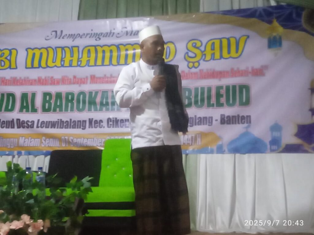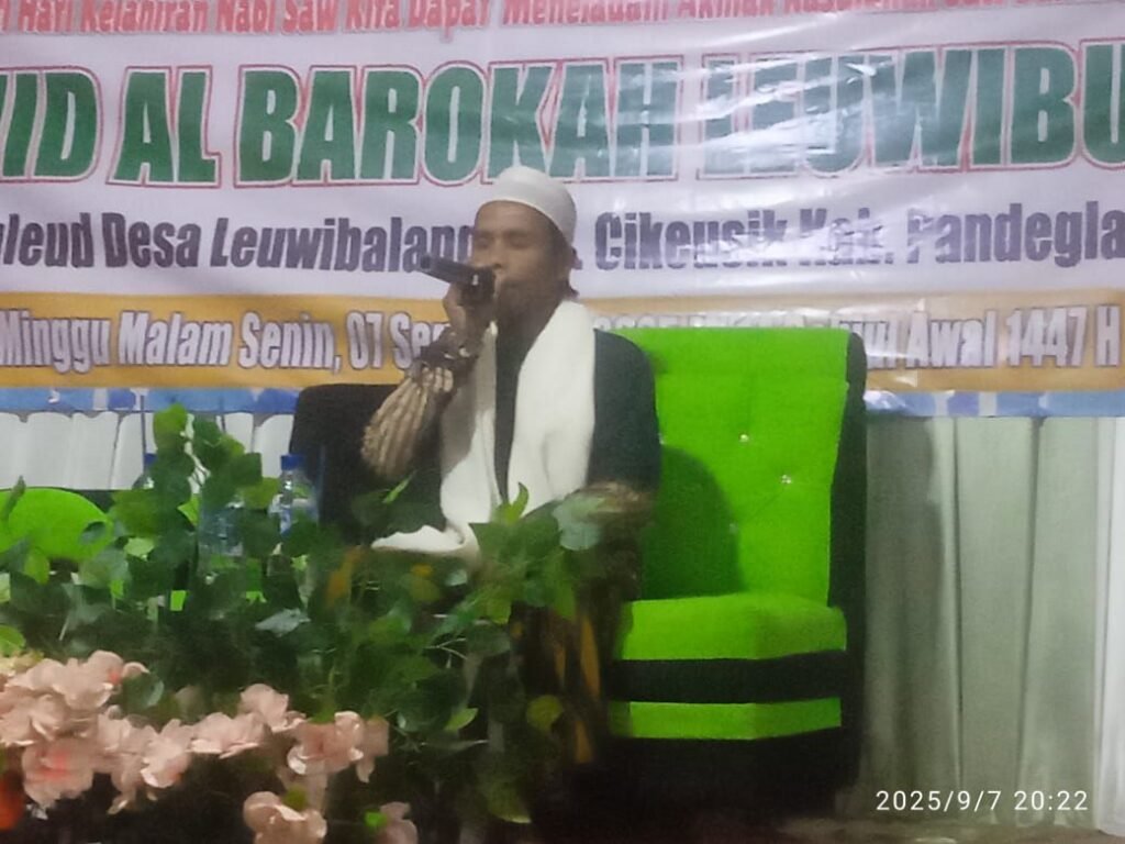 Qai H.Endang Mukarom dari kampung muara desa cikiruh wetan kecamatan Cikeusik kabupaten Pandeglang bawakan tausiah tetang ceramah peringati lahirnya Kanjeng nabi Muhamad Saw, dan saya selaku pembawa ceramah tausiah yang harus saya wariskan kepada umatnya dan sudah lah gugur atas kewajiban saya selaku penceramah yang saya emban untuk saya wariskan kepada masyarakat umum nya umat Islam, yang ada di desa Leuwibalang husnya kecamatan Cikeusik kabupaten Pandeglang provinsi Banten ini pungkasnya.